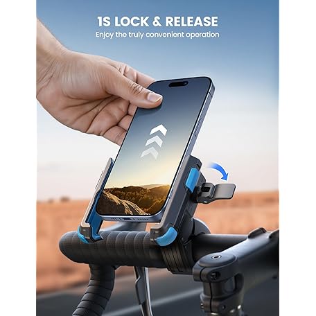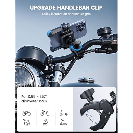 Thông tin sản phẩm Lamicall Motorcycle Bike Phone Mount - [1s Quick Release] Bike Cell Phone Holder Clip, Bicycle Scooter Handlebar Clamp, for iPhone 17 16 15 14 Pro Max, Galaxy S25 S24 Ultra, 4.7-7" Phones, Blue