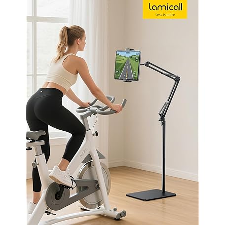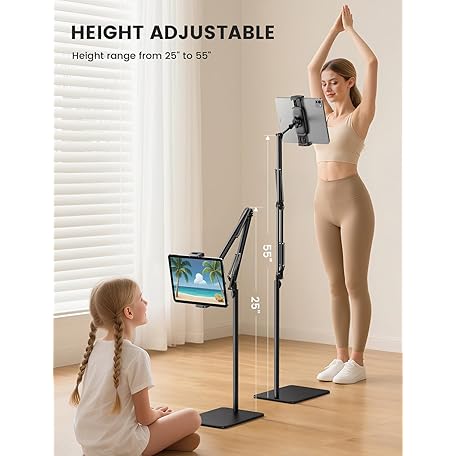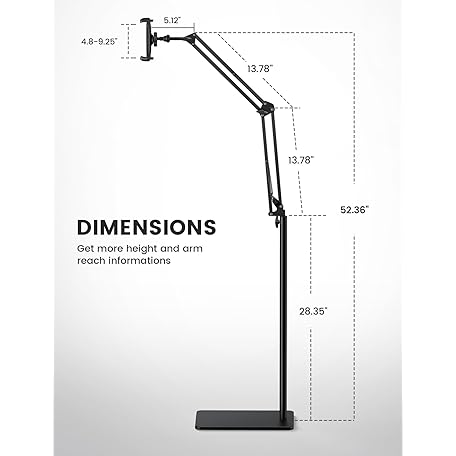 Lamicall Tablet Floor Stand Holder - [55" Height Adjustable][ Flexible Arm] Multi Angle Tablet Holder, 5lb Weighted Base Bed Mount for 4.7-13" Devices, iPad Pro Air Mini, Kindle, Tabs, E-Readers