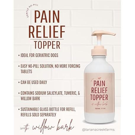 Lanana Creek Farms Pet Pain Relief Topper with Pump - 7.7 Ounces | Tablet-Free Aspirin Food Topper | Safe, Reliable, Innovative | Fast Relief for Your Pet | Made in The USA