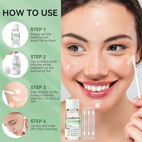 Thông tin sản phẩm LANBENA Precision Acne Spot Serum, Acne Drying Lotion, Overnight Acne Treatment For Face, Dry Out Pimples, Blemishes, Zits And Clean Pores, 0.42 Fl Oz