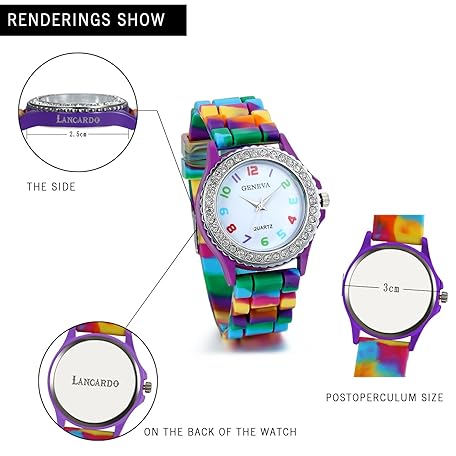 Sản phẩm Lancardo Women's Quartz Watch Rhinestone Rainbow Color Silicon Jelly Fun Play Colorful Casual Dress Wrist Watches Birthday đang được bán với giá ưu đãi là $10.8891 tại nước Mỹ.