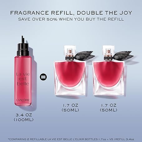 Lancôme La Vie Est Belle L'Elixir Eau de Parfum Refillable Duo - Raspberry, Violet & Cocoa Butter - Floral Women's Perfume Including 1.7 Fl Oz & Refill 3.4 Fl Oz