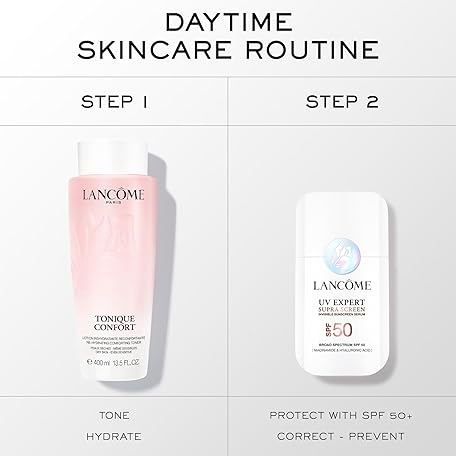 Lancôme Ultimate Day Time Prep Skincare Duo - Tonique Confort Hydrating Facial Toner 13.4 Fl Oz & Supra Screen Invisible Serum Sunscreen SPF 50+ - Anti-Aging Correction & Protection