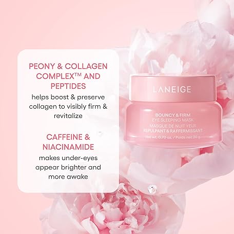 Thông tin sản phẩm LANEIGE Bouncy & Firm Eye Sleeping Mask: Depuff and Firm with Peony & Collagen Complex, Ceramide, & 5D Hyaluronic Acid