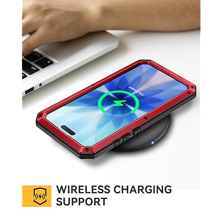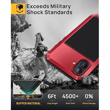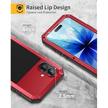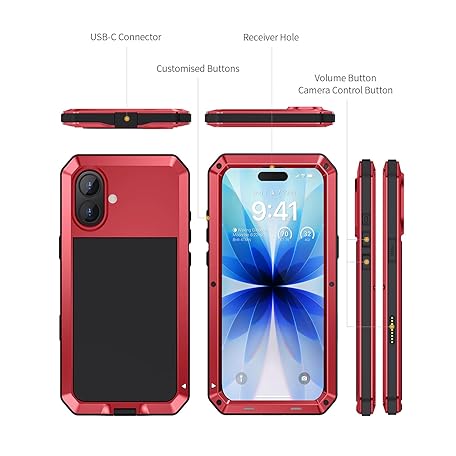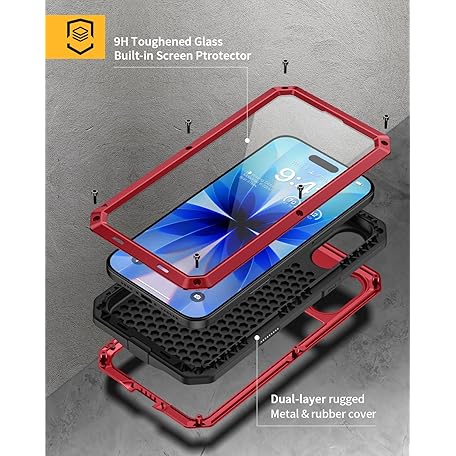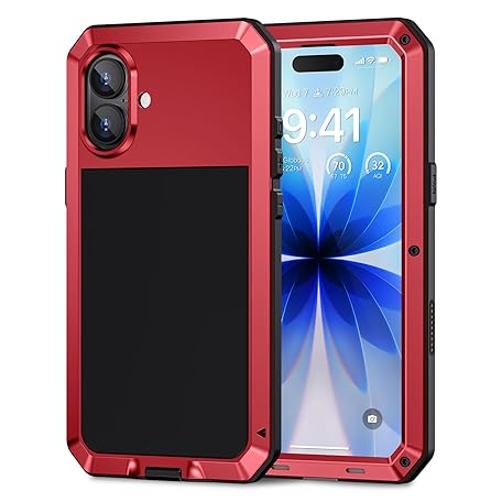 Lanhiem for iPhone 17 Case, Metal Heavy Duty Shockproof Cases, [Built in Tempered Glass Screen Protector] [Military-Grade Rugged], Full Body Protective Tough Strong Hard Phone Cover 6.3 Inch (Red)