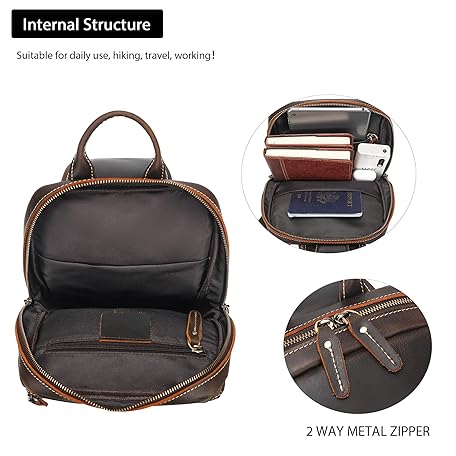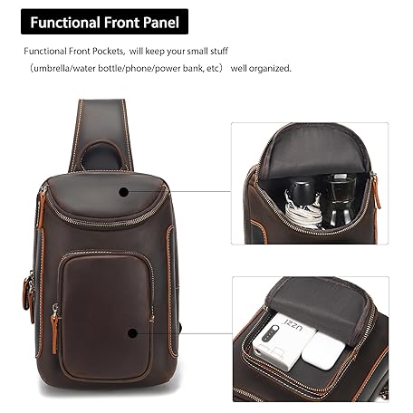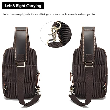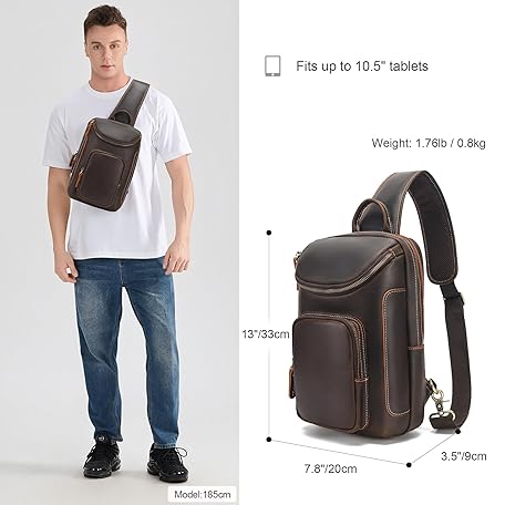 LANNSYNE Full Grain Leather Sling Bag For Men, Crossbody Chest Daypack Fits 10.5" iPad, Men’s Crossbody Bag