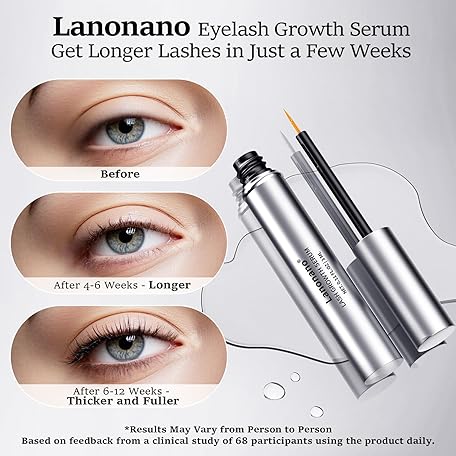 Lanonano Lash Serum, Fuller & Longer Looking Eyelash Serum for Eyelash Rapid Growth, Vegan & Cruelty-Free, 0.1 Fl Oz(3ml)
