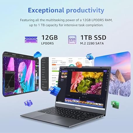 Thông tin sản phẩm Laptop, 12GB LPDDR5 RAM 1TB SSD, 15.6 Inch Laptop Computer, N95 Quad Core Processor(Beat to N5095,6500Y), Up to 3.4GHz, WiFi 5, BT 5.0, USB-C, Fingerprint,Gray