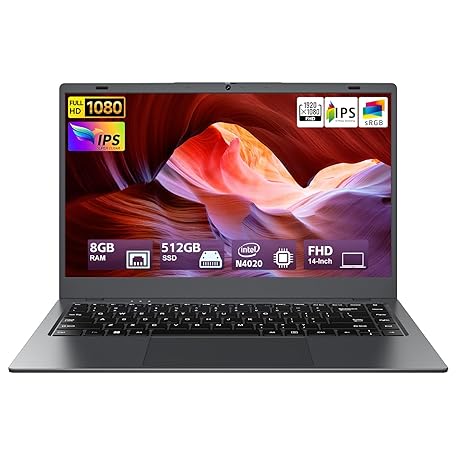 Thông tin sản phẩm Laptop Computer, 8GB RAM 512GB SSD, Laptop with N4020 Processor(Up to 2.8GHz), 14-Inch 1080P FHD IPS Display, Win11 Pro, Long Battery Life, HDMI, Laptops
