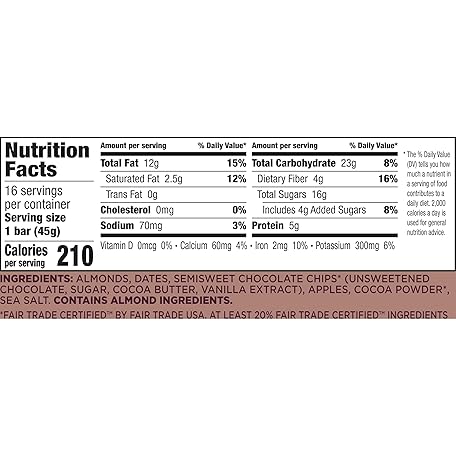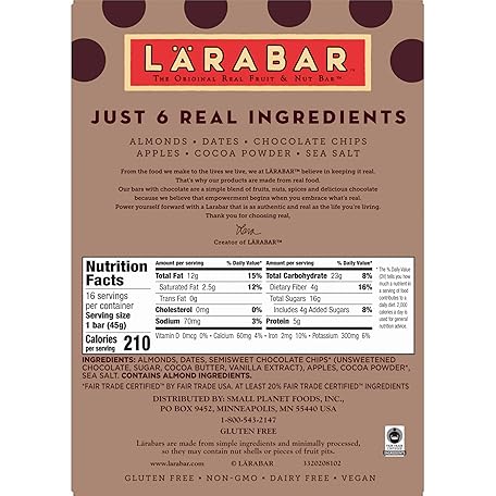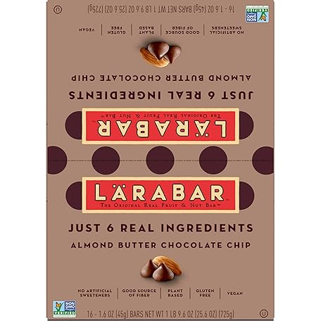 • Larabar Almond Butter Chocolate Chip, Gluten Free Vegan Bars, 16 ct