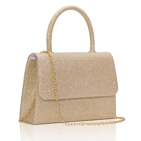 Larcenciel Women's Evening Handbags, Glitter Top Handle Evening Clutch Purse w/Chain for Party Prom Wedding Cocktail Club