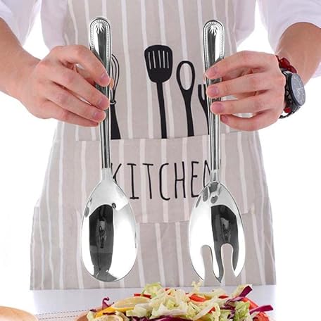 • Large 12" Salad Servers Set Serving Spoon Spork 18/10 Stainless Steel - Silver