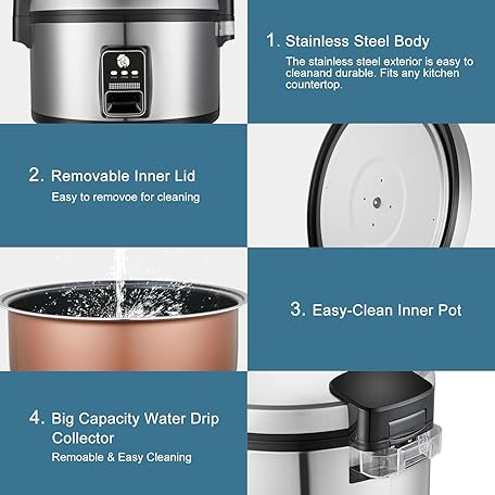 Thương hiệu VAKINEE là cái tên nổi tiếng được rất nhiều khách hàng trên thế giới chọn lựa. Với kiểu dáng đẹp mắt, sang trọng, sản phẩm Large 15L commercial rice cooker 84 cups cooked | 32 cups uncooked rice Electiric Rice Cooker & Rice Warmer Automatic Warm| Stainless Steelwith One-Touch Operation là sự lựa chọn hoàn hảo nếu bạn đang tìm mua một món cho riêng mình.