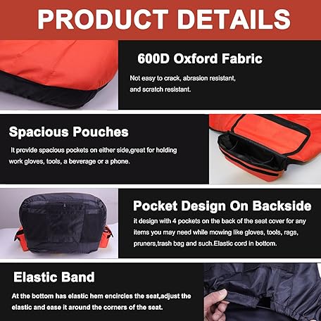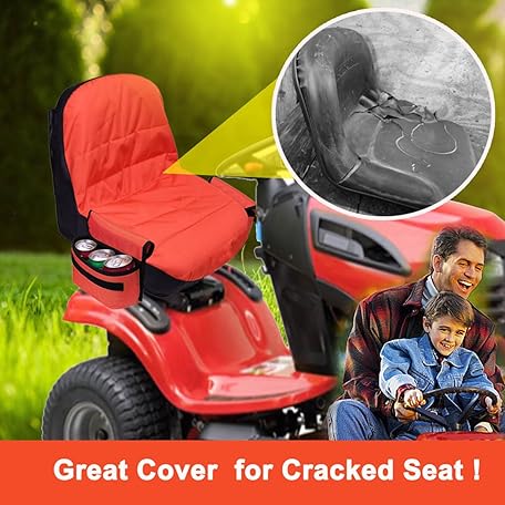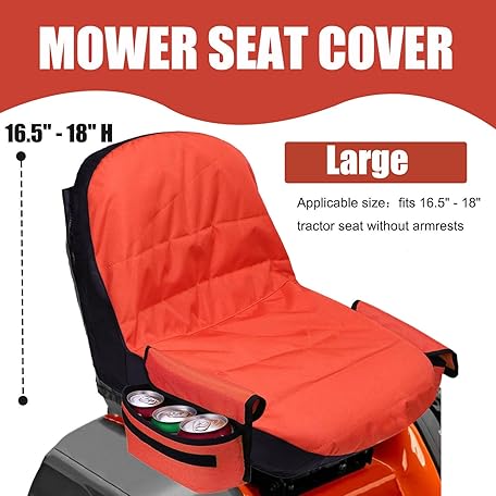 Large Lawn Mower Seat Cover Compatible with Husqvarna,Waterproof Heavy Duty Tractor Seat Cover with Coolers,for Kubota,for Craftsman,for John Deere,Fits Backrest 16.5"-18"H,Orange
