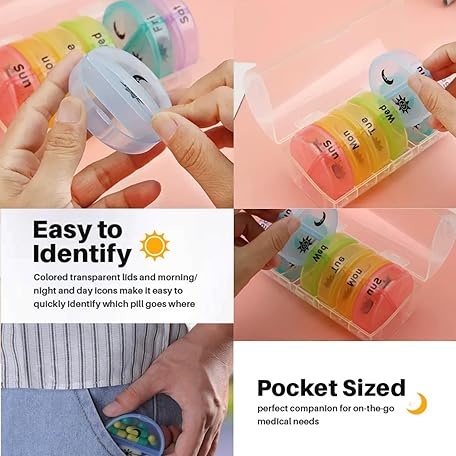 Large Weekly Pill Organizer 2 Times a Day, Vitamin Box, Convenient and Easy to Use, X-Large Pop-Out Compartments, Daily Pill Box AM PM Pill Case for Medicine/Vitamin/Fish Oil/Supplements (White)