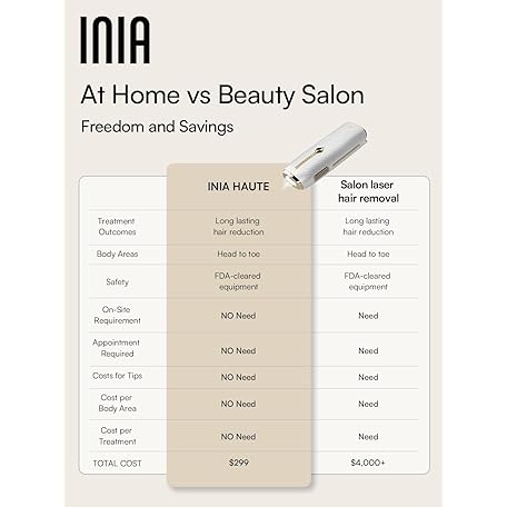 Thương hiệu INIA là cái tên nổi tiếng được rất nhiều khách hàng trên thế giới chọn lựa. Với kiểu dáng đẹp mắt, sang trọng, sản phẩm Laser Hair Removal for Women and Men, IPL Hair Removal Device with Ice-Cooling, Double Effectiveness & 5 Flashes per Second for Long-Lasting and Nearly Painless Results là sự lựa chọn hoàn hảo nếu bạn đang tìm mua một món cho riêng mình.