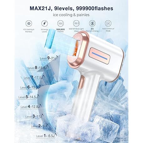 Thông tin sản phẩm Laser Hair Removal, IPL Hair Removal Device System with 9 Intensity Levels for Legs, Ice Cooling Laser Hair Removal Device with 2 Flash Modes for Women Men, Bikini Area, Face & Underarms