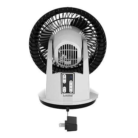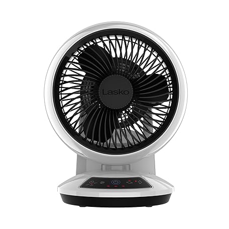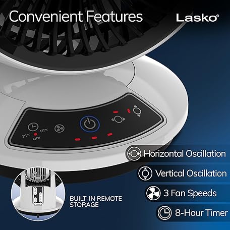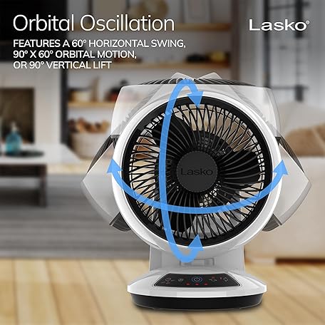 Thông tin sản phẩm Lasko Whirlwind Orbital Motion Air Circulator Table Fan, 3 Speeds, Timer, Dark Mode, Remote Control for Small and Medium Sized Rooms, White, A12557