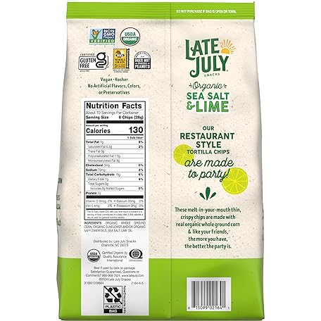 Sản phẩm Late July Sea Salt & Lime Organic Tortilla Chips, 10.1 Oz Bag đang được bán với giá ưu đãi là $5.0903 tại nước Mỹ.