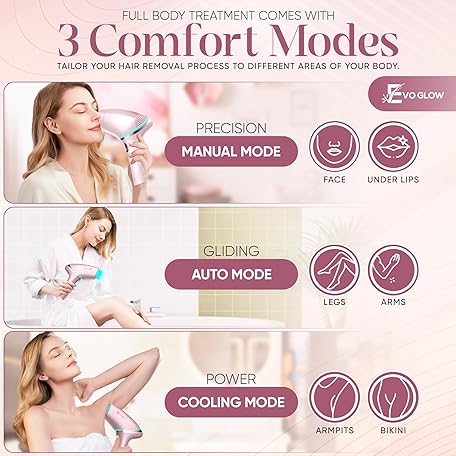 Thương hiệu EVO GLOW là cái tên nổi tiếng được rất nhiều khách hàng trên thế giới chọn lựa. Với kiểu dáng đẹp mắt, sang trọng, sản phẩm Latest Generation IPL Laser Hair Removal Device for Women. Long Lasting Visible Results in 2 Weeks. 45°F Cooling Painless Treatment, Full Body Lazer Hair Removal with Precision Head & Ideal Gift Box là sự lựa chọn hoàn hảo nếu bạn đang tìm mua một món cho riêng mình.
