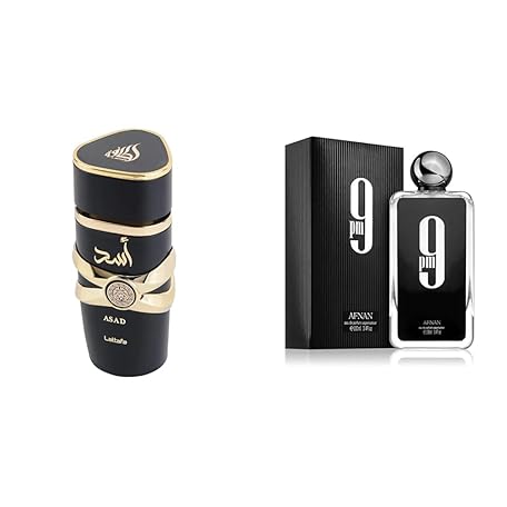 Lattafa Asad Eau de Parfum Spray 3.4oz and Afnan 9 PM Eau de Parfum Spray 3.4oz Fragrance Bundle for Men and Women