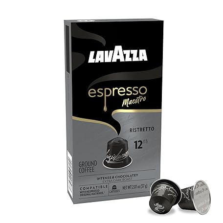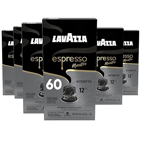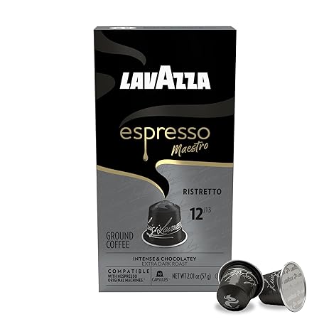 Thông tin sản phẩm Lavazza Espresso Maestro Ristretto Aluminum Capsules Compatible with Nespresso* Original Machines, Dark Espresso Roast, Arabica and Robusta Blend (60 Capsules)