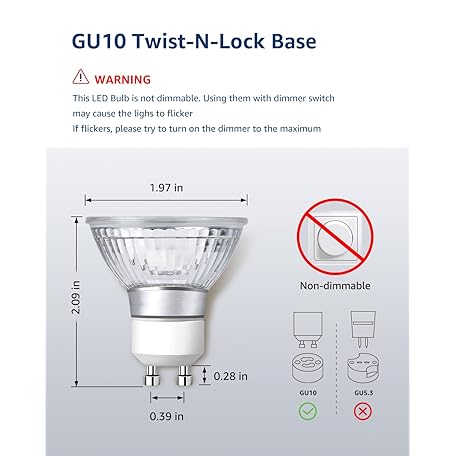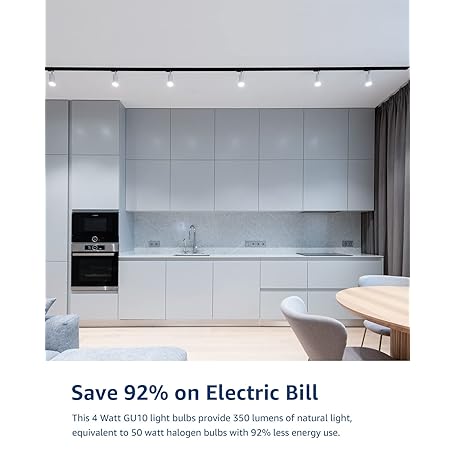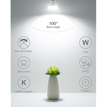 • LE GU10 LED Light Bulbs Non-Dimmable, 5000K Daylight White GU10 Bulb Replacement for Recessed Track Lighting, 4W LED Bulbs with 100°Flood Beam for Kitchen, Range Hood, Living Room, Bedroom, 6 Pack