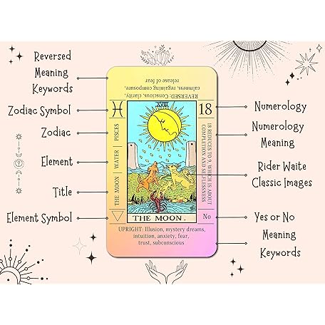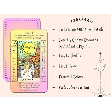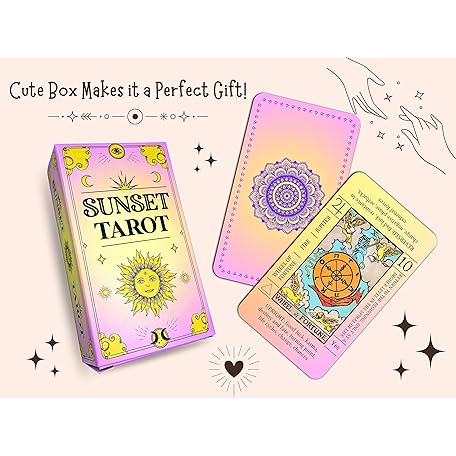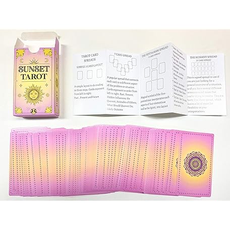 Thông tin sản phẩm Learning Tarot Cards for Beginners with Meanings on Them, Cute Sunset Tarot Cards Set Unique, with Keywords, Beautiful Rider Waite Tarot Desks, Cute Beginner Tarot Cards Deck Pink