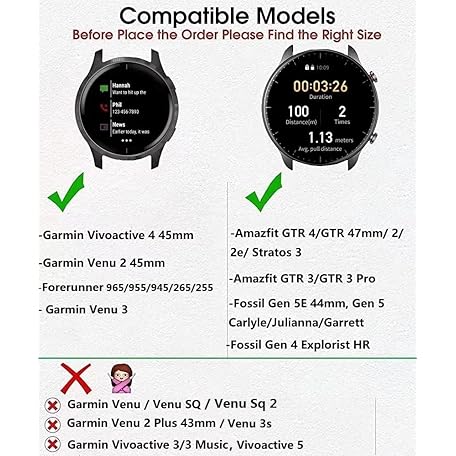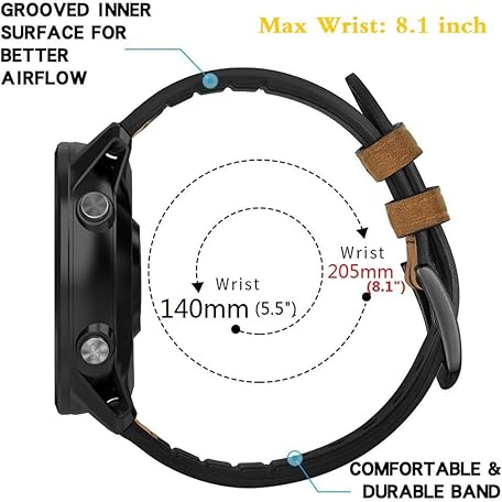 Leather Bands Compatible Garmin Vivoactive 4/Venu 3/Venu 2 45mm/Forerunner 255/265 Watch Bands, 22mm Silicone Leather Wristband for Women Men
