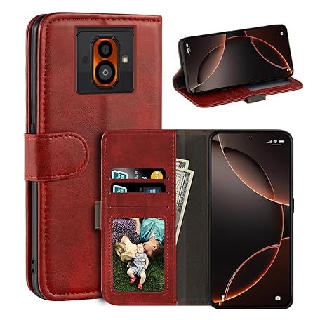 Leather Flip Cover Compatible with Kyocera Torque G04 KYV46 Wallet Case with Card Slots, Magnetic Closure, Stand Function, RFID Shockproof Folio (Red)