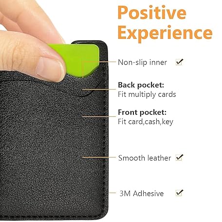 Thông tin sản phẩm Leather Phone Wallet, Stick On Card Holder for Back of Phone Case - Compatible with Most Cell Phones (iPhone, Samsung) - 2Pack Black