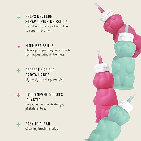Thông tin sản phẩm Legendairy Milk Honey Bear Straw Cup Silicone for Babies (Green), 8 oz. Dishwasher Safe, Food Grade Silicone, Honeybear Sippy Cup for Ages 4+ Months