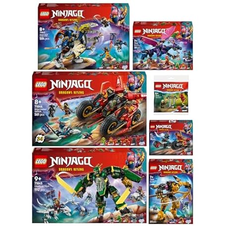 LEGO Ninjago 7-piece set: 71838 Kai's motorcycle race, 71839 Arins Spinjitzumech, 71842 Rontu the master dragon, 71843 Rogues Mech dragon rider, 71844 Ninja action racer, 71845 Lloyds Jet-Mech & 30650