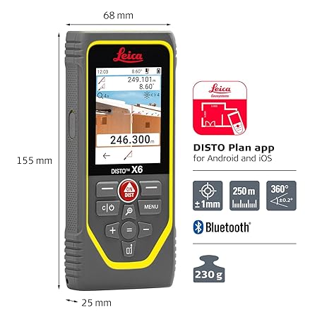 Thông tin sản phẩm Leica Geosystems DISTO X6 New, 800ft Laser Distance Measure with Bluetooth, 4X Zoom Camera