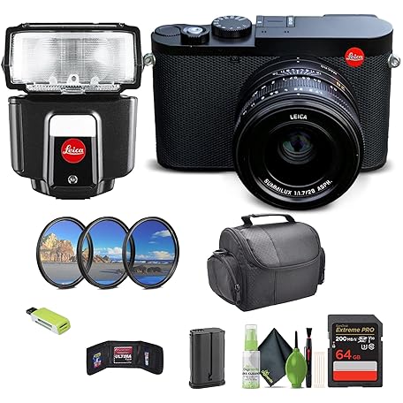 Leica Q3 Compact Digital Camera (19080) 60MP Full-Frame BSI CMOS Sensor, Summilux 28mm f/1.7 ASPH Prime Lens, 8K Video Recording + Leica 14624 Wireless TTL SF40 Flash + Bag + 64GB Memory Card + More