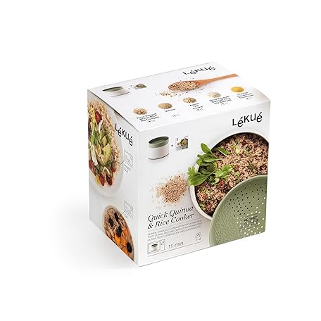Thông tin sản phẩm Lékué Microwave 34 floz Quick Quinoa, Oats, Rice Cooker | Green | Cooks Grains in Minutes, No Boiled Water, Doubles as Serving Bowl, Colander for Draining | Dishwasher Safe | BPA Free