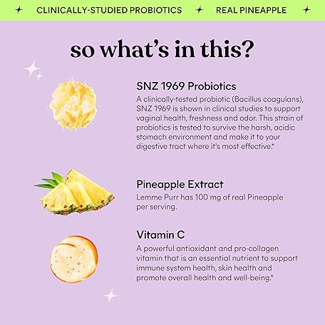 Thông tin sản phẩm Lemme Purr Vaginal Probiotic Gummies for Women - Balanced pH, Healthy Odor, Yeast Balance & Flora Support + Vitamin C for Immune Health - Tasty Pineapple (60 Count)