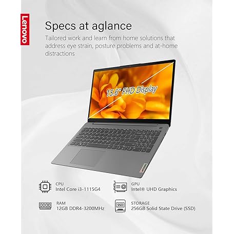 Thông tin sản phẩm Lenovo 2023 Ideapad 3i Laptop, 15.6" FHD Touchscreen, 11th Gen Intel Core i3-1115G4 Processor, 12GB DDR4 RAM, 256GB SSD, HDMI, Webcam, Wi-Fi6, Bluetooth, Win11, Arctic Grey, W/GaLiMu