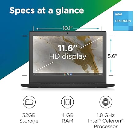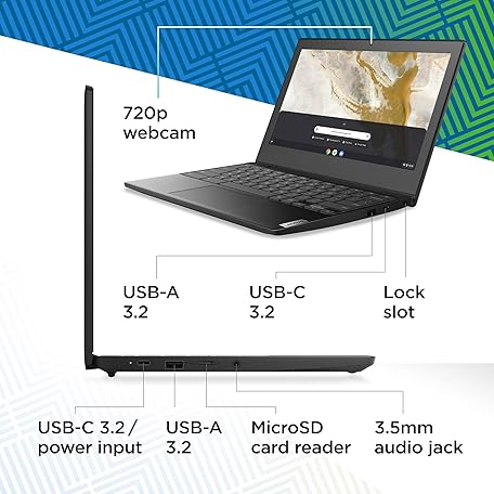 Thông tin sản phẩm Lenovo IdeaPad 3 11 Chromebook Laptop,11.6" HD Display,Intel Celeron N4020, 4GB RAM, 64GB Storage, UHD Graphics 600, Chrome OS, Onyx Black