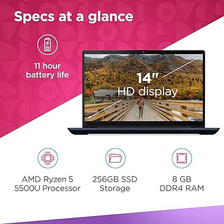 Thông tin sản phẩm Lenovo IdeaPad 3 14 Laptop, AMD Ryzen 5 5500U, 8GB RAM, 256GB Storage, 14.0" FHD Display, AMD Radeon 7 Graphics, Windows 10 Home, Abyss Blue