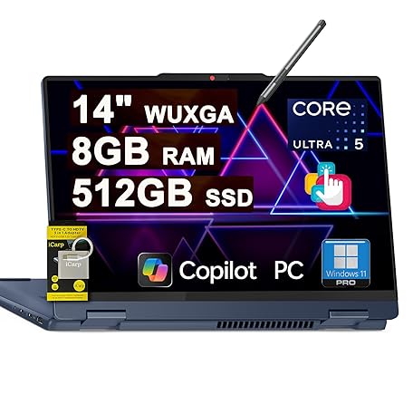 • Lenovo IdeaPad Flex 5i 2-in-1 Laptop 14" WUXGA Touch Intel 12-core Ultra 5 225U (Beats Core 7 150U) 8GB RAM 512GB SSD Backlit for Creator Designer Business Professional Win11Pro ICP Hub/Copilot AI PC