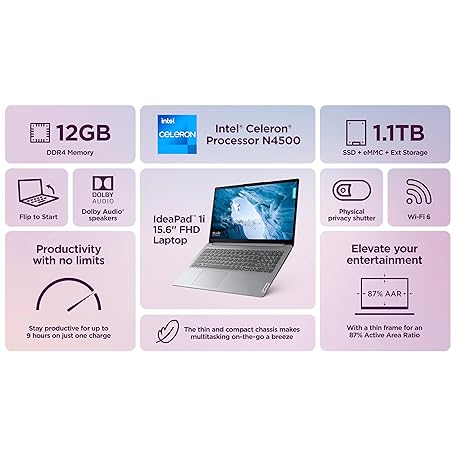 Thông tin sản phẩm Lenovo IdeaPad Laptop Computer 2025, 15.6" Display, 12GB RAM, 1.1TB Storage (500GB SSD + 128GB eMMC + 500GB Ext), Intel Dual Core Processor, Long Battery, MarxsolAccessory, 1 Year Office 365, Win 11