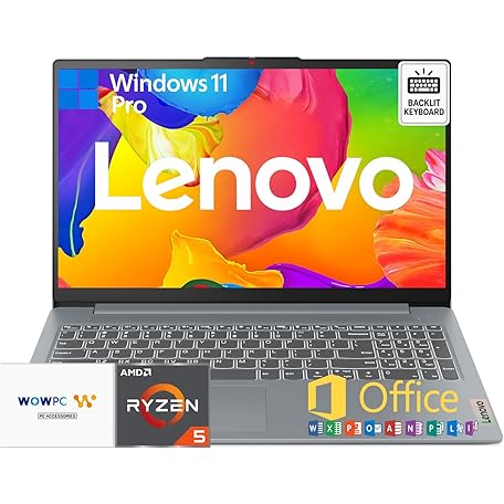 • Lenovo IdeaPad Slim 3 | 15.6" FHD Anti-Glare Display | AMD Ryzen 5 5625U(Beat Intel i9-10900T) | 16GB DDR4 | 256GB SSD | Backlit Keyboard | Windows 11 Pro | Microsoft Office 365 & WOWPC USB Included