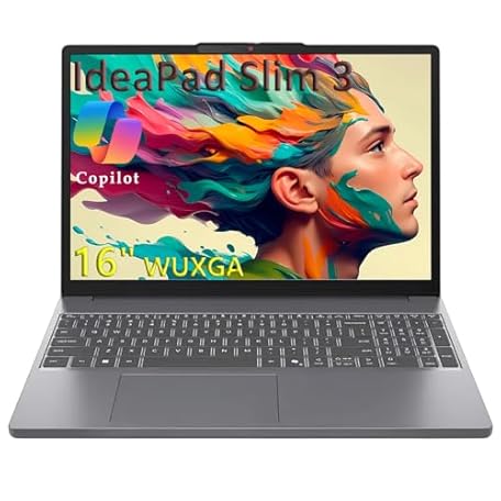 Lenovo IdeaPad Slim 3 Laptop 16" FHD+ Computer for Home Office, Intel 8-Core i5-13420H, 24GB DDR5 RAM, 512GB PCIe SSD, WiFi 6, Bluetooth 5.2, AI Copilot, Luna Grey, Windows 11 Home