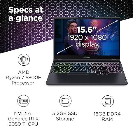 Thông tin sản phẩm Lenovo Legion 5 Gaming Laptop, 15.6" FHD Display, AMD Ryzen 7 5800H, 16GB RAM, 512GB Storage, NVIDIA GeForce RTX 3050Ti, Windows 10H, Phantom Blue
