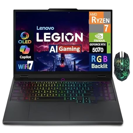 • Lenovo Legion 5 Laptop, 15.1" OLED WQXGA 165HZ Gaming Laptop, AMD Ryzen AI 7 350 Laptop Computer, NVIDIA GeForce RTX 5070, 32GB DDR5 RAM 512GB SSD, RGB Backlit KB, Wi-Fi 7, Win 11 - Eclipse Black