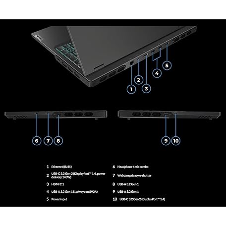 • Lenovo Legion Pro 7 Gen 8 AMD 16" Gaming Laptop (2024 Model) AMD Ryzen 9 7945HX 16C, NVIDIA GeForce RTX 4090 16GB, 32GB RAM, 2TB (1TB+1TB) NVMe SSD, 16.0" IPS QHD+ 500 nits 240Hz, Windows 11 Home