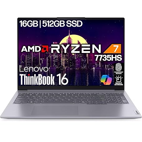 Thông tin sản phẩm Lenovo ThinkBook 16 Gen 7 16" FHD IPS Display, AMD Ryzen 7 7735HS (Beat Ultra 7 255U), 16GB DDR5 RAM, 512GB NVMe, Backlit Keyboard, Fingerprint, WiFi 6E + BT, RJ-45, Win 11 Pro, AI Business Laptop