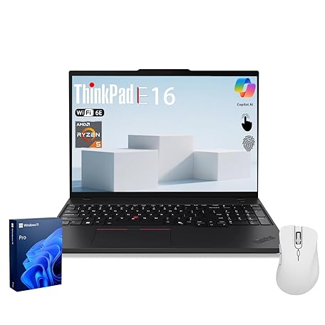 Lenovo ThinkPad E16 Gen 2, 16" FHD+ Touchscreen Business Laptop, AMD Ryzen 5 7535U, 32GB DDR5 RAM, 1TB SSD, Fingerprint, Backlit Keyboard, Webcam, Wi-Fi 6E, HDMI, Windows 11 Pro, Black, w/Bundle