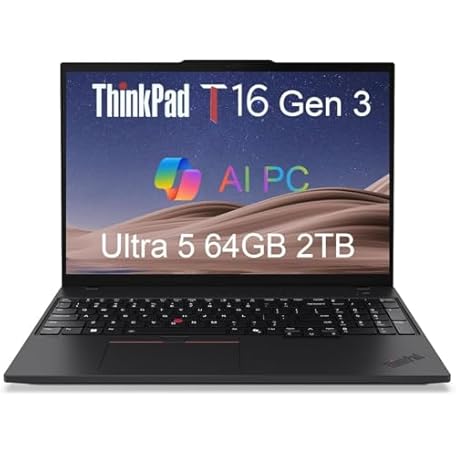 Lenovo ThinkPad T16 Gen 3 Business Laptop (16" FHD+, Intel 12-Core Ultra 5 125U (i7-1355U), 64GB DDR5, 2TB SSD), 2 x Thunderbolt 4, Backlit, Fingerprint, Ethernet, 5MP Webcam, Win 11 Pro, 2025 AI PC